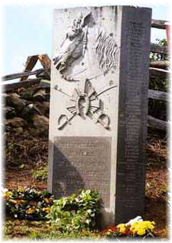 In 1995, the Snickersville Turnpike Association applied for Federal funds to restore two sites along the Turnpike - one in the area around a former one-lane bridge and the other at the Civil War Monument erected in 1883 by survivors to commemorate their comrades in the 1st Massachusetts Regiment who were killed, wounded or captured on June 17, 1863 at the First Battle of Aldie. Under the Federal program, STA had to contribute $14,000, which was 20% of the grant requested. After six years of bureaucratic delays, STA is pleased to announce that the work in both areas has been completed and that we are delighted with the results. In celebration of this major accomplishment, there was a ribbon-cutting ceremony at the monument site on August 18th, 2001. The site had been saved and restored. Members of the 1st Massachusetts Cavalry reenactment unit drove down from Massachusetts with their horses where they were joined by cavalry re-enactors from Virginia. Seven of the Loudoun County Board of Supervisors attended, as did Delegates Joe May and Bob Marshall. Both Union and Confederate troopers laid a wreath at the monument and then the citizens retired to a picnic supper at George and Marcia de Garmo's where there was good food, good music and good friendship. It was a celebration that affirmed that citizens that care could save places that are threatened. There is now a grassy pulloff area capable of supporting a tour bus, and signage describing both Confederate and Union positions. The stone fence, behind which sharpshooters from the 2nd and 3rd Virginia Cavalry had dismounted and inflicted such heavy casualties on the 1st Massachusetts Cavalry, has been restored to its 1860's condition. STA was able to acquire 100-year old chestnut rails, and they now constitute the rail fence paralleling the Turnpike. Dead trees have been removed, and a few native trees planted. The view across the Turnpike has been cleared, and much of the battlefield can now be readily seen. You really must see it to appreciate the entire restoration. |